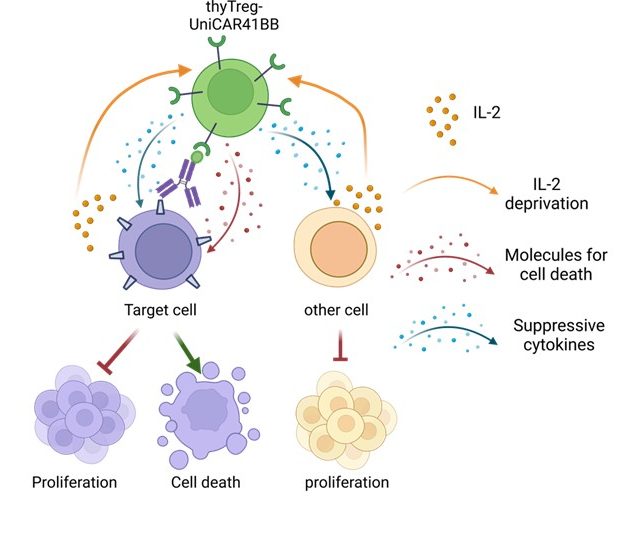 Enhancing specific thymic Treg activation and function with 4-1BB monomeric streptavidin-based CARs